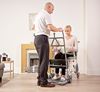 Its versatility allows use with wheelchairs, toilet and shower chairs. Soft and wide padding in the leg support improves stability, and the sturdy handle offers many grip options for both the user and the carer. The rear wheels with independent locking manual brakes, makes it easy for a carer to manoeuvre, and provides maximum stability and safety for the user.